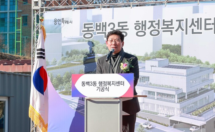 | ▲ 이상일 용인특례시장이 24일 열린 기흥구 동백3동 행정복지센터 기공식에서 인사말을 하고 있다. |