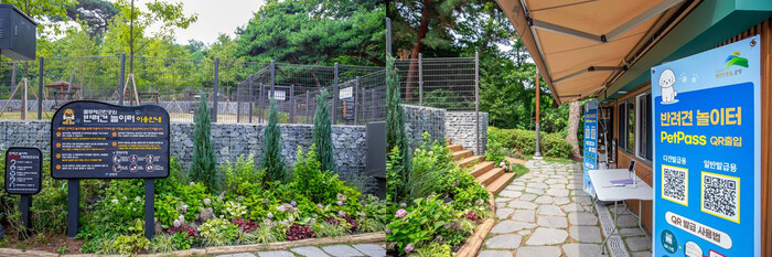 ‘은평구 반려견 놀이터’는 진관동 물푸레근린공원 내 1,300㎡ 규모로 조성됐다. 동물등록을 완료한 반려견이면 무료로 보호자와 동반 입장이 가능하다.