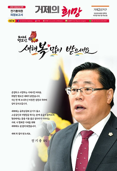 전 의원은 “지역주민의 목소리를 경청하여 도정에 반영하는 것은 선출직 공직자로서 당연한 일”이라며, 의정보고서 발간을 통해 지역주민과의 약속을 실천하고 향후 거제 미래를 함께 만들어 가는데 최선의 노력을 다하겠다는 의지를 밝혔다.