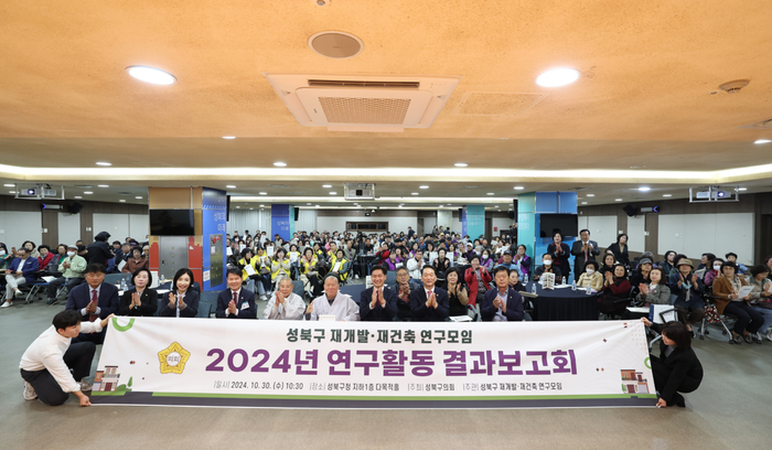 [시민일보 = 문민호 기자] 서울 성북구의회(의장 임태근) 의원연구단체인 '성북구 재개발·재건축 연구모임'이 2024년 연구 활동을 마무리하는 결과보고회를 최근 성북구청 지하 1층 다목적홀에서 개최했다고 5일 밝혔다.