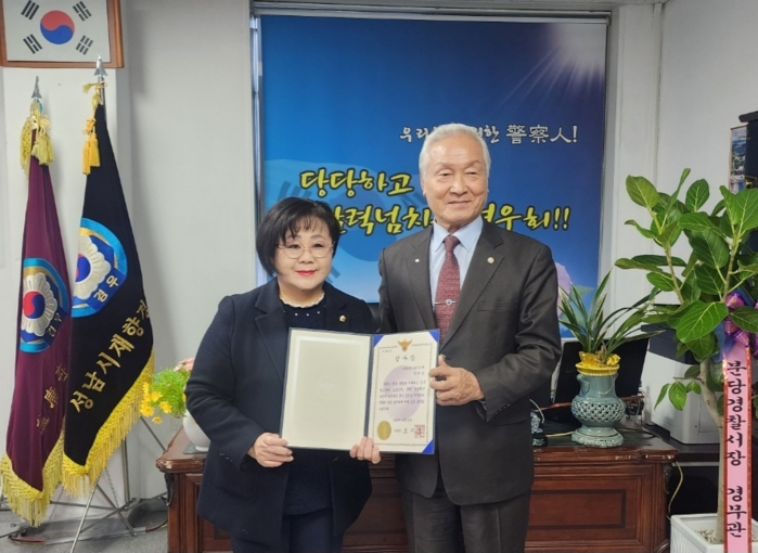 서희경 의원은 당초 10월21일 '제79주년 경찰의 날'을 맞이해 조지호 대한민국 경찰청장으로부터 수상한 감사장을 11월22일 제61회 경우의날에 수여받기로 했으나, 의회일정으로 인해 참석치 못하고 금일(12월3일) 분당경찰서 경우회 사무실에서 수여받게 되었다.