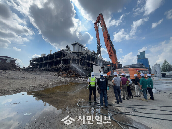 금호타이어 광주공장은 지난 5월 발생한 화재 이후 8월12일 해체 착공신고가 접수돼 구조물 붕괴 위험과 오염물 확산 방지를 위해 8월18일부터 경찰·소방 입회 하에 현장 감식 및 해체 작업을 진행하고 있다. 해체 계획에 따라 지붕 위 위험요소 제거 후 외부에서 압쇄장비를 활용해 3층부터 순차적으로 철거할 예정이다.