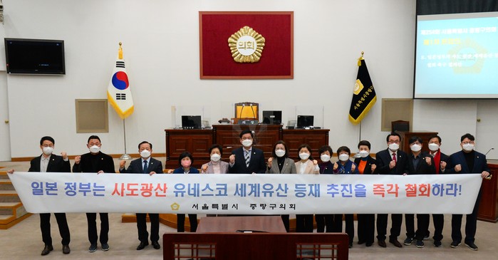 [시민일보 = 여영준 기자] 서울 중랑구의회(의장 은승희)가 최근 열린 제254회 임시회 제1차 본회의에서 임익모 의원이 대표 발의한 ‘일본 정부 사도광산 세계문화유산 등재 추진 철회 촉구 결의안’을 만장일치로 채택했다.