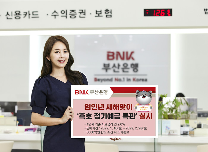 [시민일보 = 여영준 기자] BNK부산은행은 임인년 새해를 맞아 ‘흑호 정기예금 특판’을 실시한다고 10일 밝혔다.
