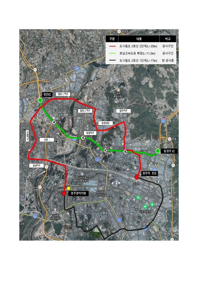 고광완 광주시 행정부시장은 “올 하반기부터 대규모 공사로 교통혼잡이 불가피하겠지만 공사 중 교통처리 등 종합교통대책을 조기에 마련해 시민 불편을 최소화할 것”이라며 “2개의 공사가 완료되면 광주시의 도시발전과 교통복지 증진 등 시민편의가 대폭 개선되는 만큼 공사기간에 다소 불편하더라도 시민들의 적극적인 이해와 협조를 당부한다”고 말했다.