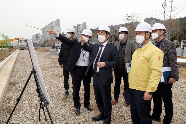 이어, 남구 진월동 진월복합운동장 공사현장을 방문해 공사 진행 상황을 살펴보고 관계자들에게 안전하고 내실 있는 공사를 당부했다.