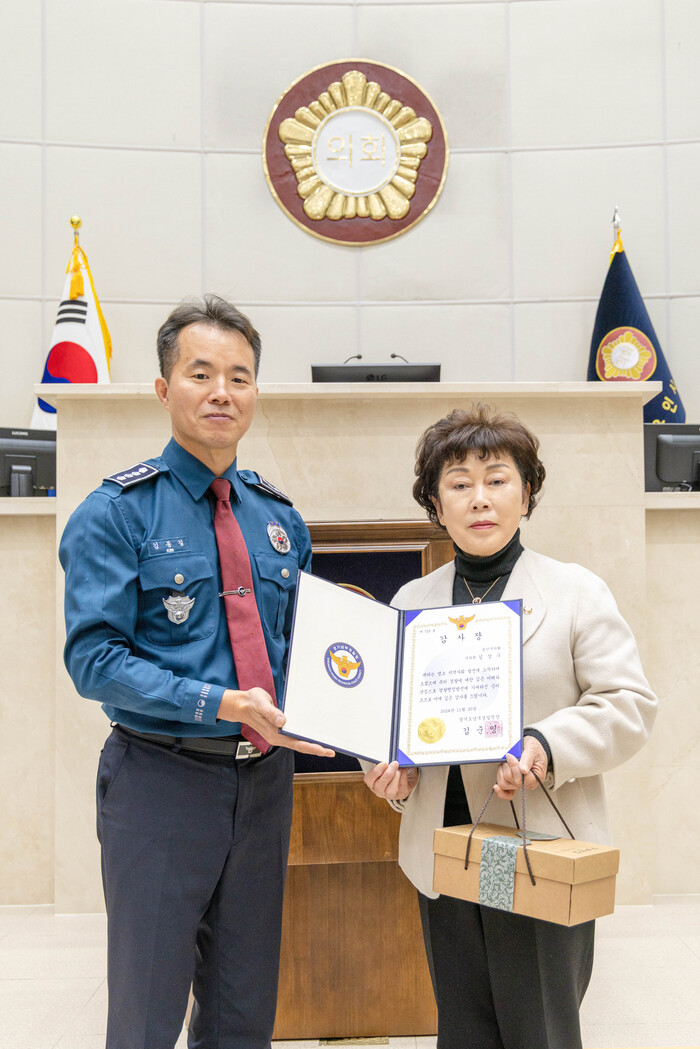 [용인=오왕석 기자] 김상수 용인특례시의회 문화복지위원장(포곡읍·모현읍·역북동·삼가동·유림동 / 국민의힘)이 경찰행정 발전에 기여한 공로를 인정받아 경기도남부경찰청장으로부터 감사패를 받았다.