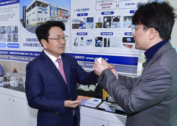 강 시장은 업무보고가 끝난 뒤 광주테크노파크 2단지에 위치한 ‘헬스케어로봇실증센터’, ‘의료산업지원센터’의 기업지원 시스템 등을 둘러보고, 현장 직원들의 애로사항을 청취했다.