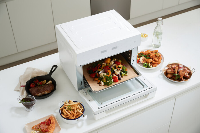 리하스에 따르면 올스텐 대용량 오븐형 에어프라이어는 효율성 측면에서는 30L의 대용량 에어프라이어로 동급 대비 슬림한 사이즈로 내부 용량은 늘리고, 두 가지 요리 설정을 동시에 가능하게 하는 듀얼쿡 기능을 가지고 있다.