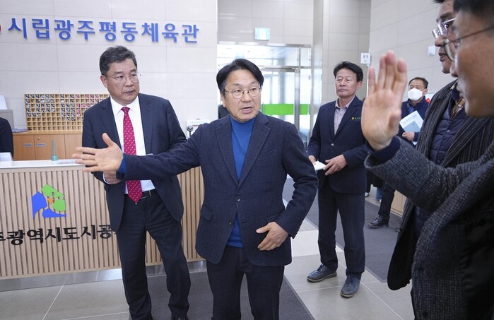 강 시장은 이날 오전 광산구에 위치한 시립광주빛그린체육관과 시립광주평동체육관을 찾아 수영장과 탈의실, 다목적강당 등 시설을 둘러봤다.