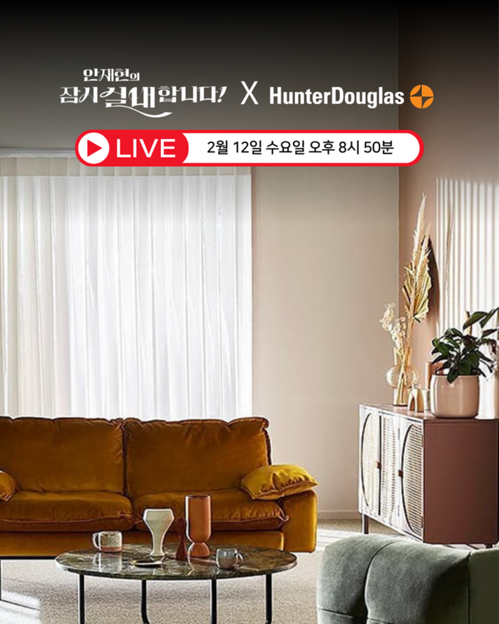 헌터더글라스는 이번 라이브 방송에서 방송중에만 24개월 무이자 혜택, 무료방문실측, 무료설치시공 및 해피콜시 무료 취소 혜택을 제공한다.