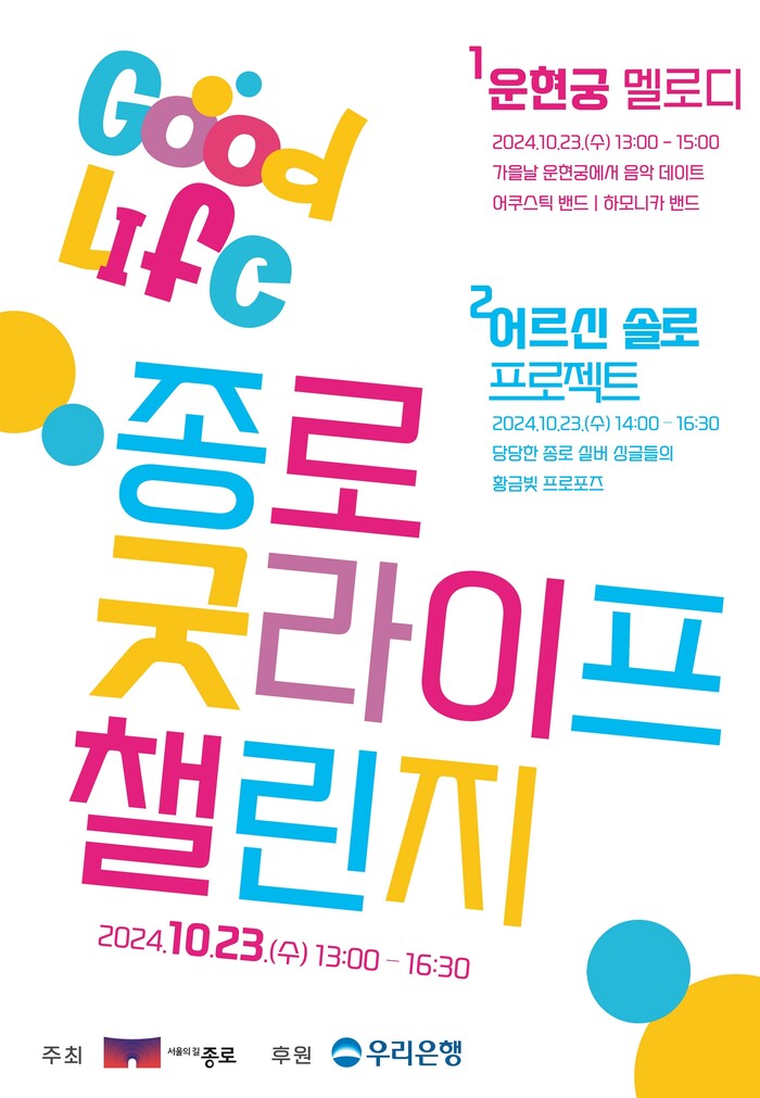 [시민일보 = 이대우 기자] 서울 종로구(구청장 정문헌) 운현궁(삼일대로 464)에서 오는 23일 ‘종로 굿라이프 챌린지’를 개최한다.