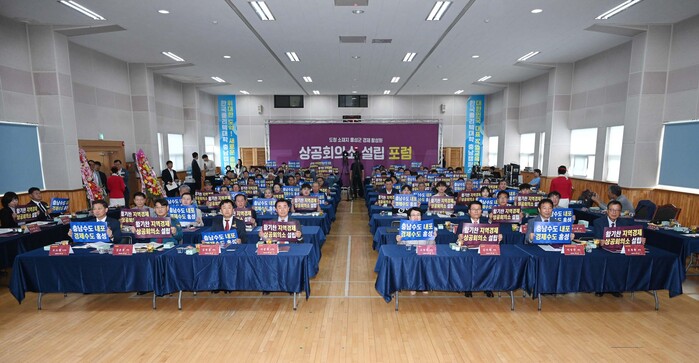 개회식에서는 의식행사와 함께 개회사, 환영사, 격려사, 축사 등 주요 내빈들의 축하인사가 이어졌으며, ‘충남수도 내포’, ‘경제수도 홍성’ 등 문구가 새겨진 피켓을 들고 참석자 모두가 참여한 상공회의소 설립 구호 제창 퍼포먼스가 펼쳐졌다.