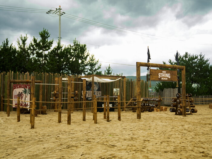 HDEX(에이치덱스)는 LA 베니스비치의 보디빌더들의 성지로 유명한 머슬비치에서 영감을 받아, LA의 이국적인 분위기와 가장 유사한 양양 서피비치에 ‘스트롱비치’라는 이름으로 공간을 기획했다. 실제로 스트롱 비치에서는 서피비치의 이국적인 해변 분위기에 맞추어 운동 기구들을 모두 목재로 제작했다.