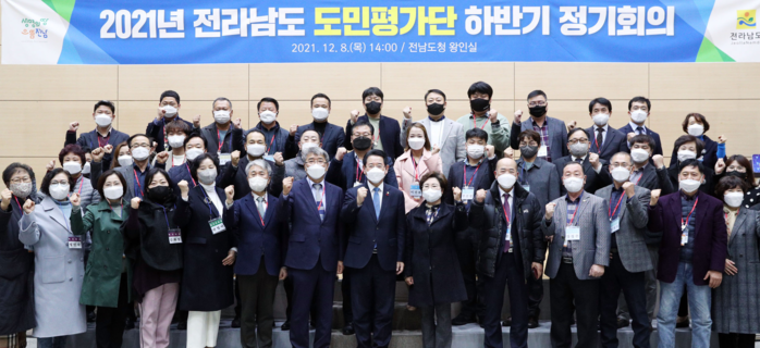 전라남도는 8일 도청 왕인실에서 도정 주요 정책에 대한 도민 참여를 보장하고 정책의 신뢰도를 높이기 위한 ‘2021년 도민평가단 하반기 정기회’를 열어 올 한 해 성과를 결산했다.