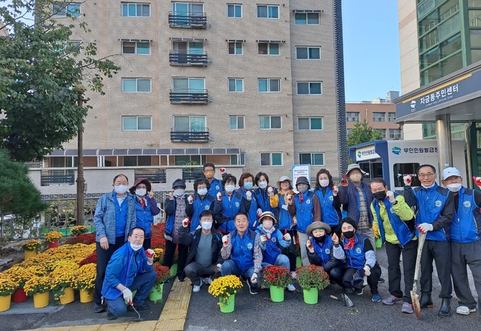 경기 의정부시 자금동은 최근 주민들과 함께 자금동 지역내 곳곳에 국화를 심는 아름다운 마을 만들기 행사를 진행했다. 사진은 이날 참여자들이 기념촬영을 하고 있는 모습. (사진제공=의정부시청)