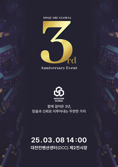 행사에는 엠스퀘어의 주요 관계자, 커뮤니티 회원, 협력사가 참석하며, 지난 3년간의 주요 성과 발표와 함께 회사의 미래 전략을 공유하는 프로그램으로 구성된다.