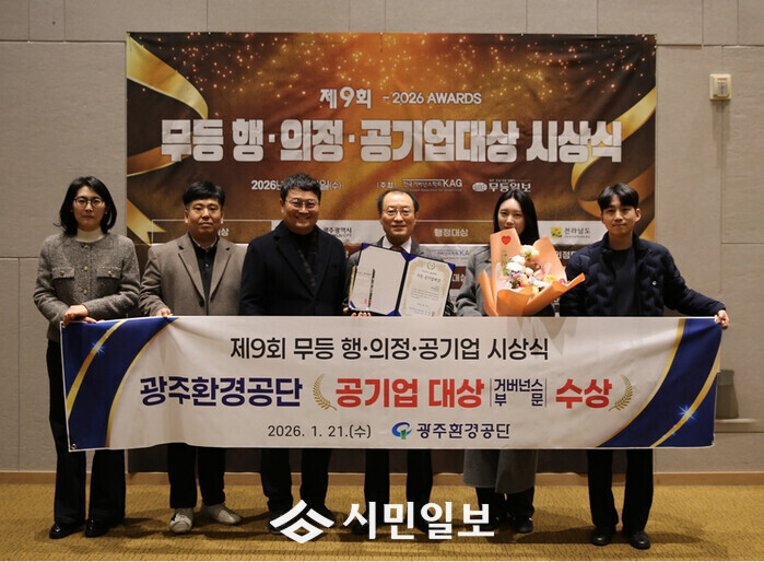 [광주=정찬남 기자] 광주환경공단(이사장 김병수)이 21일, 한국거버넌스학회와 지역언론사가 공동 주관하는 ‘제9회 무등 행·의정·공기업 시상식’에서 거버넌스 부문 대상 수상하며 2년 연속 영예를 안았다.