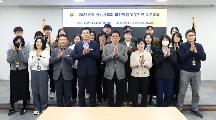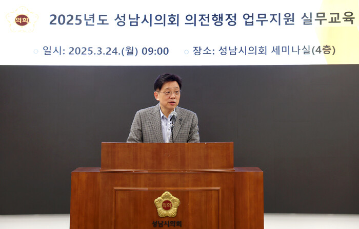 [성남=오왕석 기자] 성남시의회는 24일 의장실을 비롯해 각 정당 대표위원실, 국장실, 각 층 의원실 데스크에서 근무하는 직원들을 대상으로 의전 및 행정 업무지원 실무교육을 실시했다. 이번 교육은 원활한 의전 및 행정 업무 수행을 위해 마련되었다.