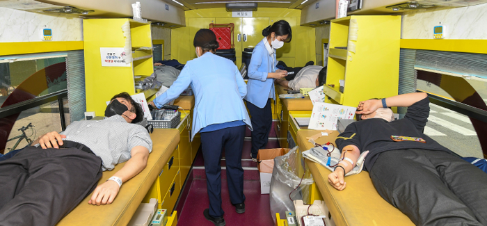[목포=황승순 기자]HD현대 계열사인 현대삼호중공업 임직원들이 혈액 수급에 차질을 빚고 있는 광주·전남지역을 위한 단체 헌혈에 나섰다.