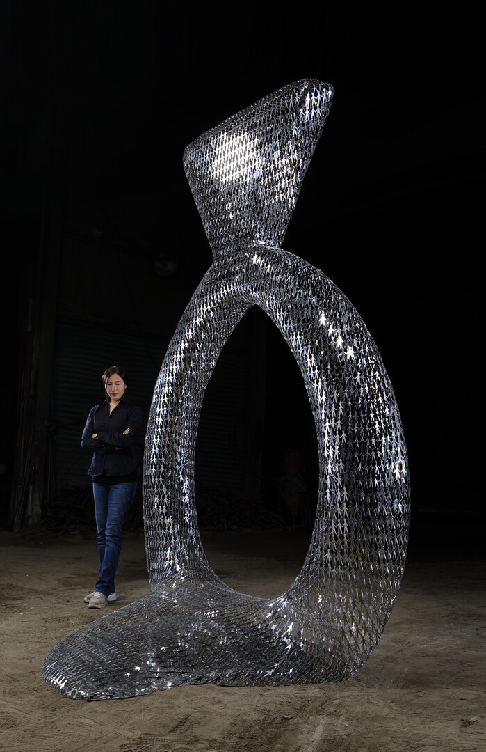 4000명의 사람 형상이 군집돼 반지 형상이 되는 3m 높이의 스테인레스 스틸 작품, 수많은 사람들이 벽과 바닥에서 일어나 마치 걸어 몰려오는 듯한 설치 작품, 유명 상품을 오마주 한 다양한 색으로 화합하듯 설치된 부조, 몇가지 가방 형상이 접합돼 돌고 있는 키네틱 작품, 원을 그리며 춤추는 듯한 입체와 부조 등 작품을 통해 자유로운 시각적 사유와 더불어 관계망 속에서 존재하는 인간의 삶을 바라보게 한다.