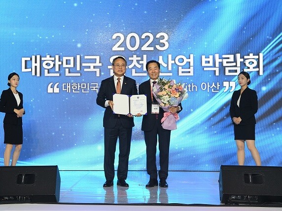 | ▲ 행정안전부 차관으로부터 온천도시 지정서를 받고 있다 |