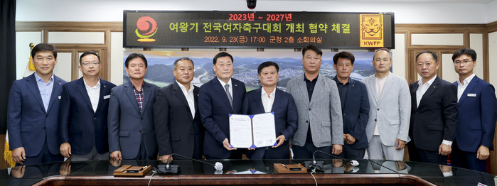 협약서는 여왕기 전국여자축구대회를 2023년부터 2027년까지 5년간 합천에서 매년 5월중 개최하고, 성공적인 대회개최를 위해 합천군과 한국여자축구연맹이 상호 협력하는 내용을 포함하고 있다.