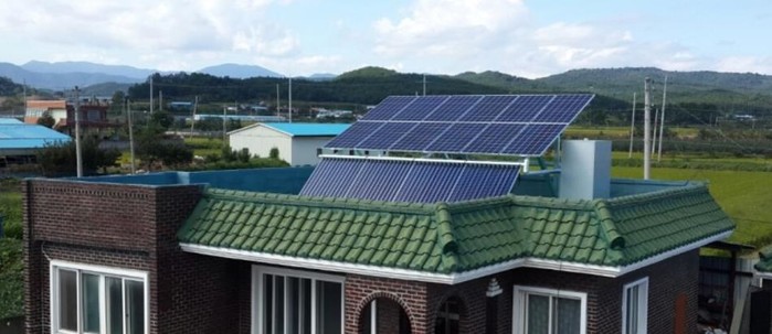 | ▲ 영암군 에너지 자립마을 조성사업에 참여한 가구의 옥상에 설치된 태양광 발전 모듈 / 영암군 제공 |