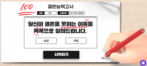 성혼 중심 결혼정보업체 노블레스 수현 공식 홈페이지의 ‘러브테스트’에서 최근 신규 업데이트된 ‘결혼능력고사’에 참여할 수 있다.