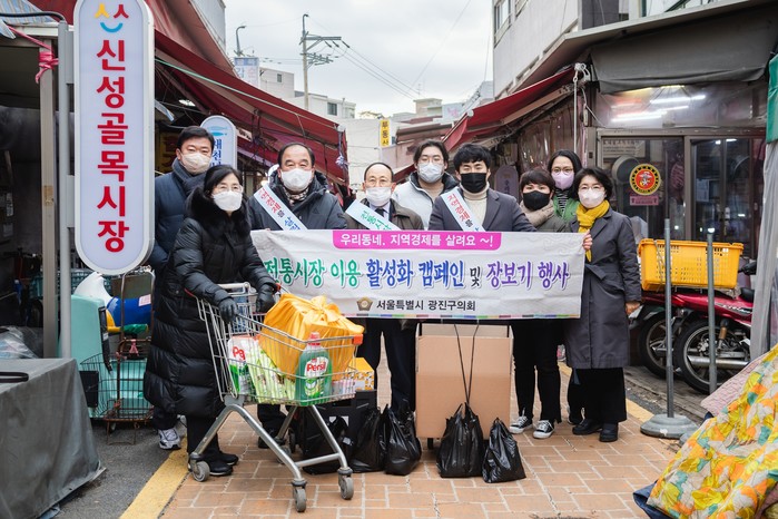 [시민일보 = 여영준 기자] 서울 광진구의회(의장 추윤구)가 설 명절을 앞두고 지난 17~18일 양일에 걸쳐 ‘장보기 행사’ 및 ‘전통시장 이용 캠페인’을 펼쳤다.