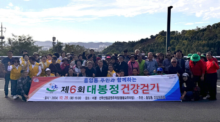 진주시 중앙동 건강위원회(위원장 옥원호)는 지난 29일 지역주민 200여 명이 참석한 가운데 진주시 보건소와 중앙동 행정복지센터가 함께하는 ‘제6회 중앙동 주민과 함께하는 대봉정 건강 걷기’ 행사를 개최했다.