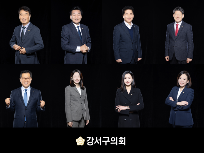 | ▲ (위 왼쪽부터) 박학용, 박성호, 전철규, 김희동 의원/ (아래 왼쪽부터) 한상욱, 김순옥, 김지수, 최세진 의원) (사진=강서의회 제공) |
