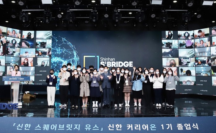‘신한 커리어온(Career On)’ 1기 졸업식은 ‘신한 커리어온을 기억해’를 주제로 신한은행 진옥동 은행장의 축사, 1기 수료생 소감발표, 우수 교육생 및 스타트업 시상 등 교육 과정을 성공적 수료한 교육생들을 축하하고 앞으로의 행보를 응원하는 순서로 진행됐다.