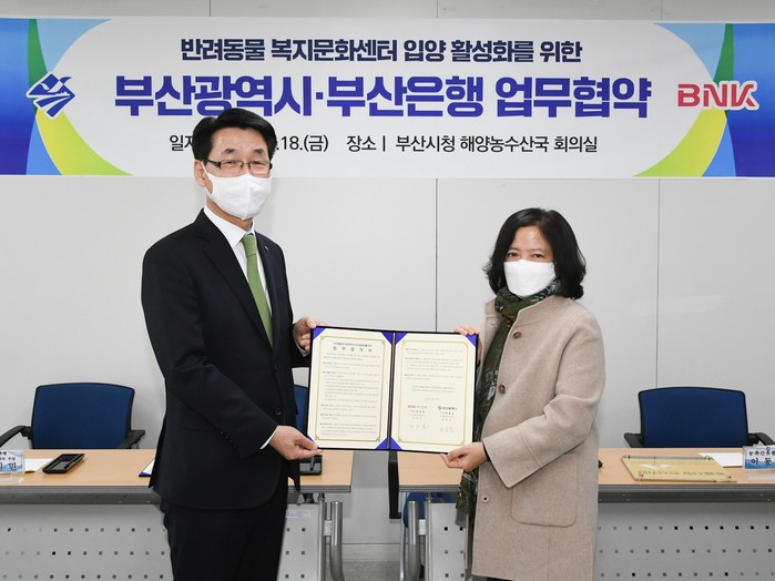 [시민일보 = 여영준 기자] BNK부산은행은 18일 오후, 부산시청에서 ‘유기동물 입양 활성화 업무협력 협약’을 실시했다고 밝혔다.