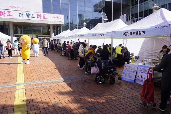 마포구청 광장에서는 오전 10시부터 오후 3시까지 지역사회 주민들의 마음건강 관리에 도움이 될 수 있는 캘리그라피, 원예테라피, 향수만들기 등의 체험 부스가 설치된다. 더불어 ‘마음알음 OX 퀴즈’, ‘마음포근 포토존’ 등의 이벤트를 통해 현재 자신의 마음 건강을 확인할 수 있다.