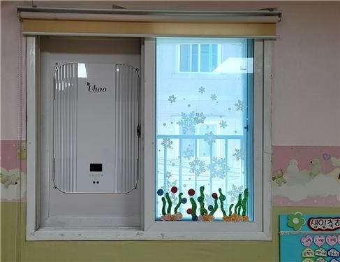 | ▲ 어린이집에 설치된 창문환기형 공기청정기. (사진제공=관악구청) |
