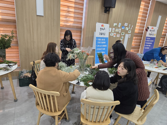 이날 행사는 ‘마을교육공동체란 무엇인가’에 대한 소개를 시작으로, 각 마을학교의 활동 사례를 공유하고 2026년 추진 방향을 논의하는 시간으로 채워졌다. 특히 참석자들은 행사장 내 마련된 부스에서 ▲리스 만들기(꽃아책아) ▲가죽 카드지갑 만들기(도란도란) ▲비즈아트 및 자개공예(보길윤선도) ▲미술심리치료 및 한식 체험(성백 역사&미술) ▲아로마 목걸이 만들기(스마트치유) 등 각 마을학교의 특색이 담긴 프로그램을 직접 체험하며 교육 활동의 현장감을 느꼈다.