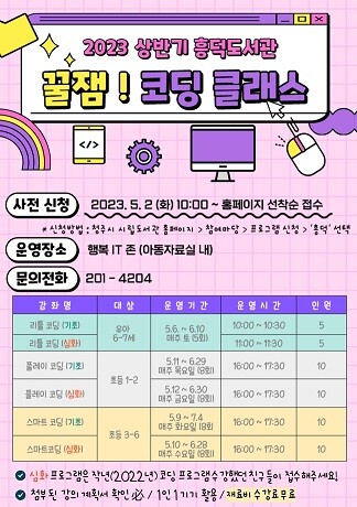 [청주=최성일 기자] 청주흥덕도서관은 2025년부터 적용되는 정부의 초등학교 코딩교육 의무화 정책에 발맞추기 위해, 어린이대상‘꿀잼! 코딩 클래스’프로그램을 운영한다고 30일 밝혔다.
