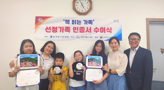 진주시는 지난 9월 30일 연암도서관에서 한 해 동안 다독한 가족회원 중‘2024년 책 읽는 가족’ 두 가족을 선정하여 인증서 수여식을 가졌다고 밝혔다.