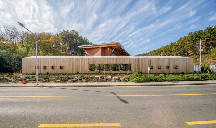 수상작인 ‘진양호 우드랜드 부속건물’은 목구조로 길이 30m 장방형의 단층 건물이다. 긴 형태의 평면이 구조적 안정성과 시각적 통일감을 확보하고, 길이 방향을 따라 배치된 양면창이 개방감을 제공해 내부와 외부, 본 건물과 부속된 사이의 흐름을 자연스럽게 이어주고 있다.