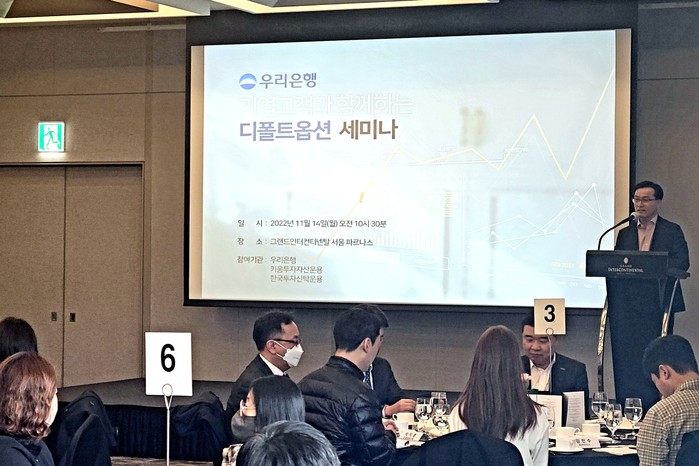 [시민일보 = 홍덕표 기자] 우리은행은 확정기여형(DC) 퇴직연금제도 디폴트옵션(사전지정운용제도) 시행에 따라 퇴직연금 도입 기업의 새로운 제도에 대한 이해를 돕고 업무를 지원 하기 위해 14일 우리은행 기업고객과 함께하는 디폴트옵션 세미나를 개최했다.