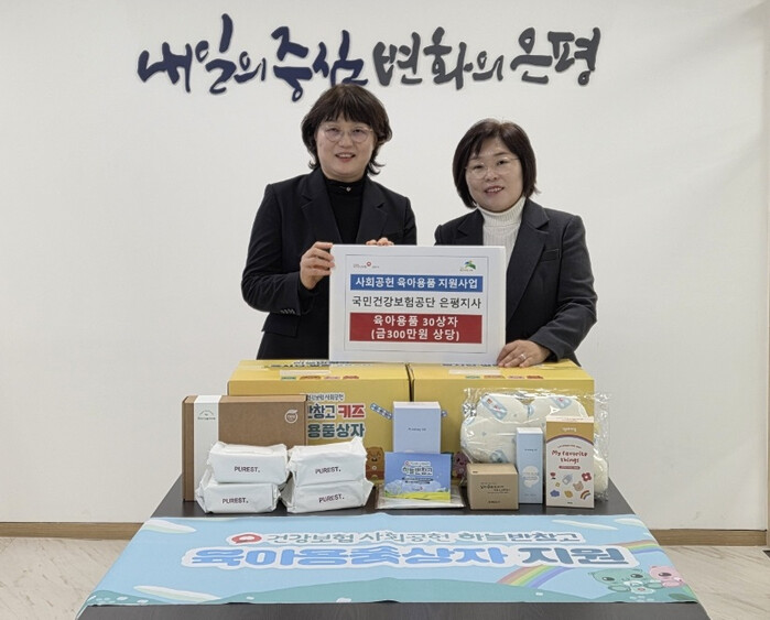 이날 국민건강보험공단 은평지사는 유아용 세제, 이유식 용기, 타월, 바디로션 등 금 10만 원 상당의 육아용품 상자 총 30개를 전달했다. 지원 물품은 관내 생활이 어려운 영유아 출산·보육 가구에 전달될 예정이다.