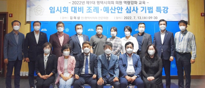 [평택=오왕석 기자] 평택시의회(의장 유승영)는 13일 시의회 3층 간담회장에서 ‘조례·예산안 심사 기법’을 주제로 역량강화 교육을 실시했다.