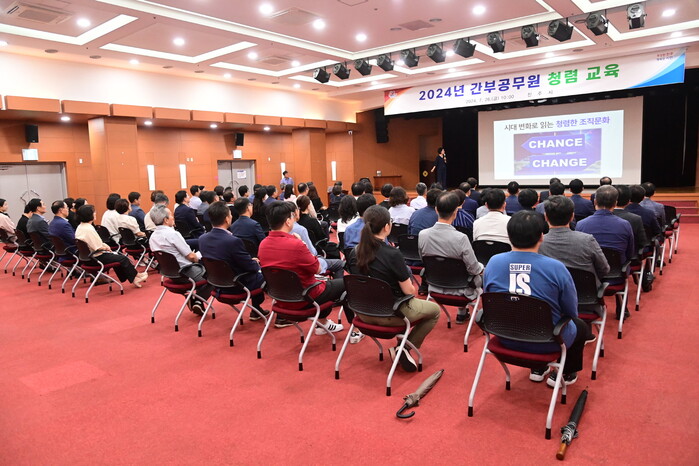 진주시는 26일 시청 시민홀에서 조규일 진주시장을 비롯한 5급 이상 간부공무원 90여 명이 참석한 가운데 청렴 교육을 실시했다.