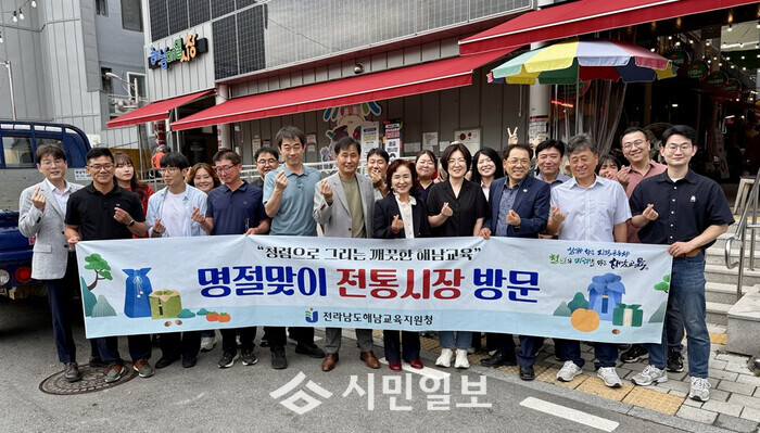 [해남=정찬남 기자] 전남 해남교육지원청(교육장 조연주)은 추석 명절을 앞둔 2일, 교육지원청 직원들과 함께 지역 내 해남매일시장을 방문했다.