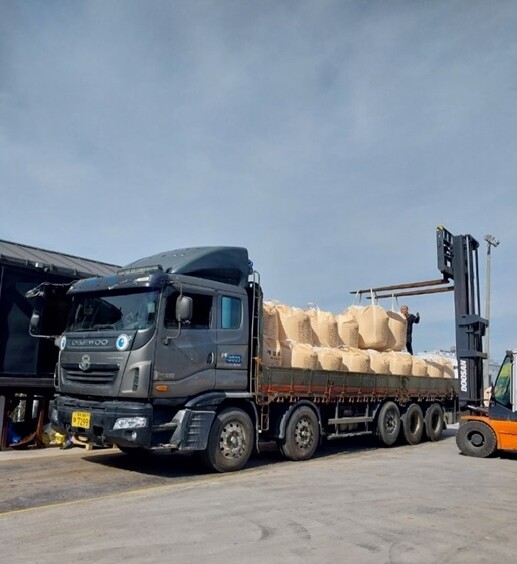 | ▲ 제일트레이딩 당진공장에서 출하되는 제설제 |