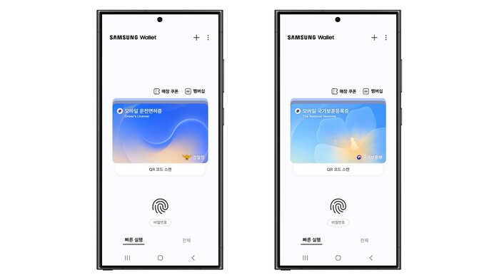 | ▲ 삼성월렛에 실물 신분증과 똑같은 법적 효력이 있는 모바일 신분증인 '모바일 운전면허증'과 '모바일 국가보훈등록증'이 탑재된 이미지. (사진=삼성전자 제공) |