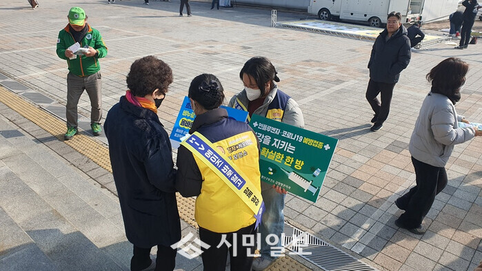 | ▲ 광산구 공직자, 13일 광주송정역 광장에서 감염병 예방 홍보 캠페인 / 광주광역시 광산구청 제공 |