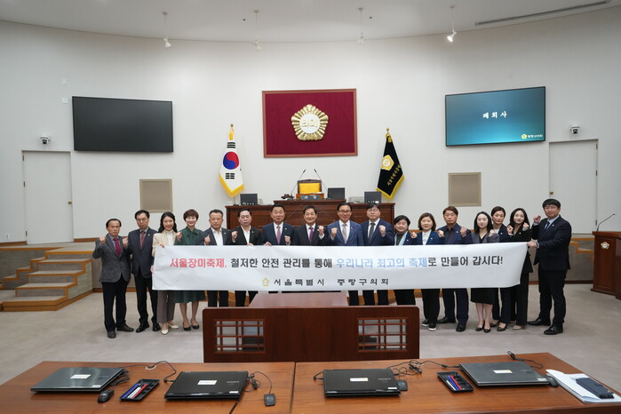 [시민일보 = 여영준 기자] 서울 중랑구의회(의장 조성연)가 지난 26일 제261회 임시회 제2차 본회의에서 이윤재 의원이 대표 발의한 ‘서울장미축제 안전대책 마련 촉구 결의안’을 만장일치로 채택했다.