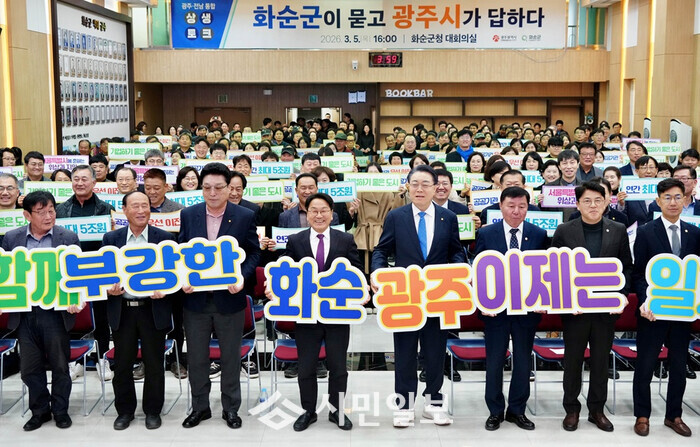 강기정 광주시장은 “통합의 힘은 광주가 화순을 생각하고 화순이 광주를 생각하는 데서 나온다. 어떻게 힘을 모아 상생의 전략을 만들 수 있는가가 핵심이다”며 “통합특별법은 인공지능(AI)·반도체·모빌리티·에너지 특례 등 기업과 관련된 조항이 많은 ‘청년일자리 특별법’인 만큼 이를 통해 기회를 만들고, 청년이 떠나지 않는 특별시를 만들겠다”고 밝혔다.